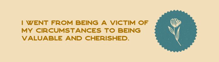 I left that conversation with my God feeling like a beautiful daughter of a King, and no longer the abandoned wife of a sinful man’s lust. I went from being a victim of my circumstances to being valuable and cherished.